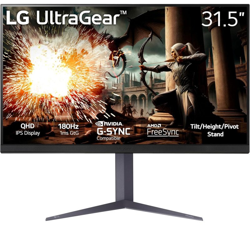 LG Ultragear 32" QHD (2560x1440) Gaming Monitor, 180Hz, 1ms, IPS, NVIDIA G-SYNC Compatible, AMD FreeSync, VESA Adaptive Sync