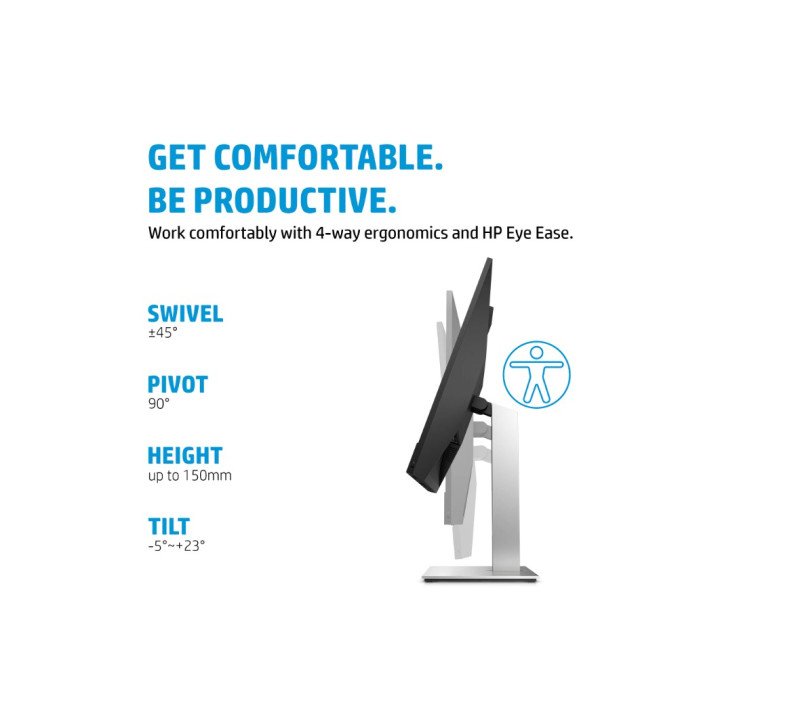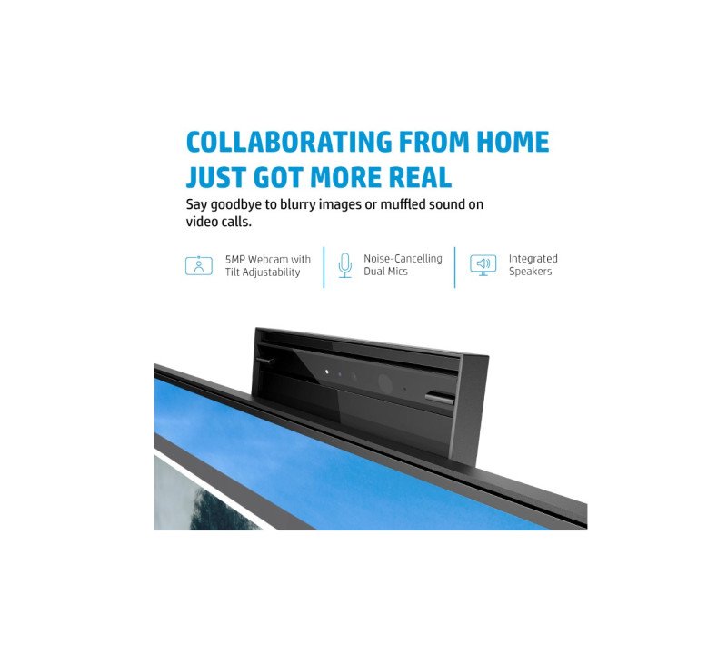 Display features: On-screen controls; Anti-glare; Height Adjust/Tilt/Swivel/Pivot; Integrated speakers; Webcam; HP Eye Ease