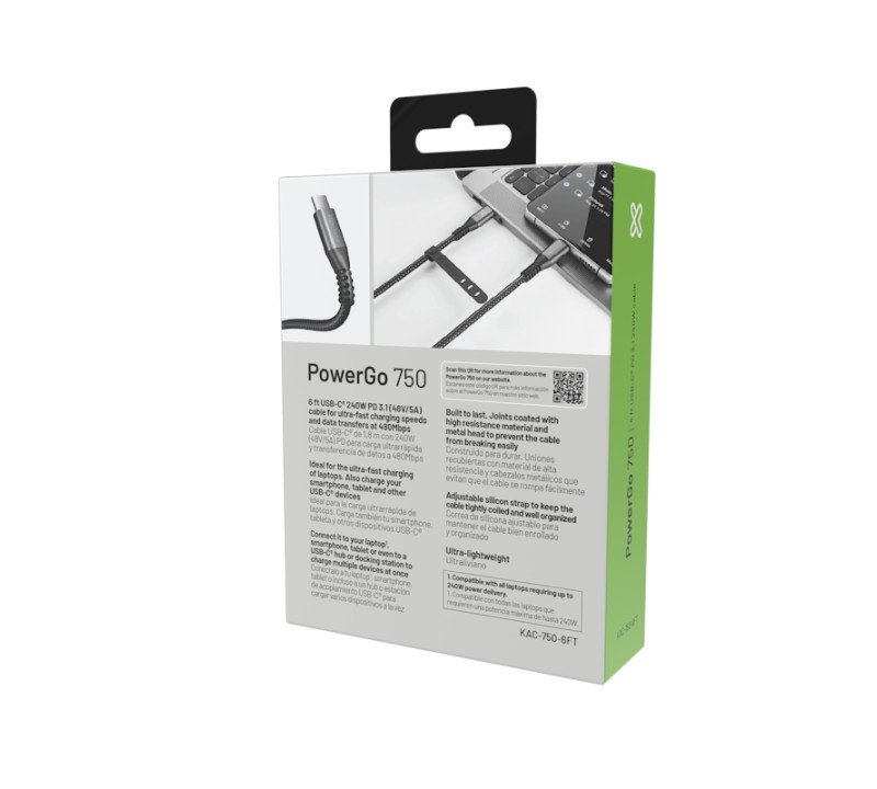 Klip Xtreme PowerGo 750 6FT USB C cable - 24 pin USB-C