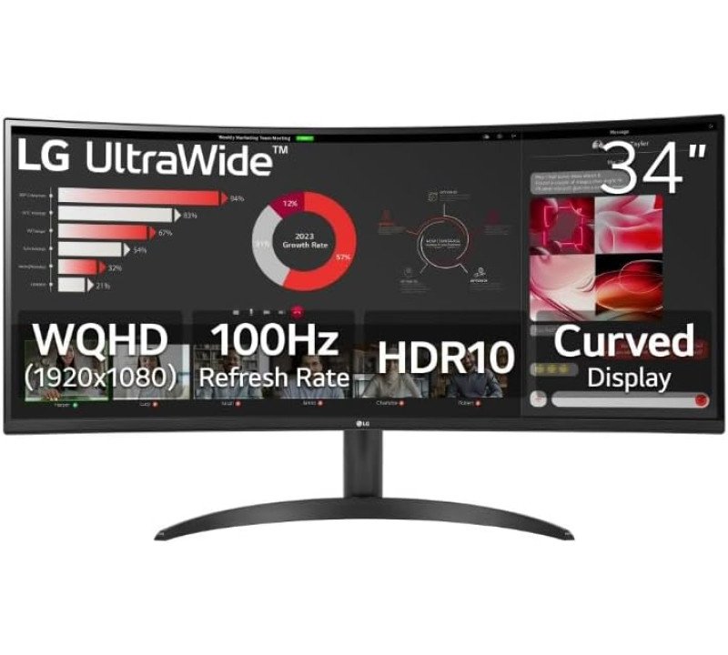 LG UltraWide WQHD(3440 x 1440), HDR 10, 100Hz 34" Curved Monitor